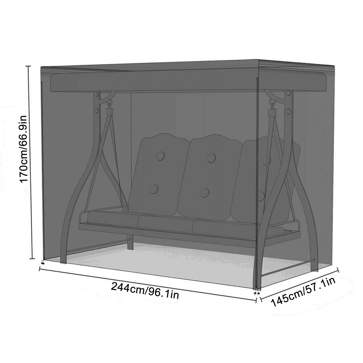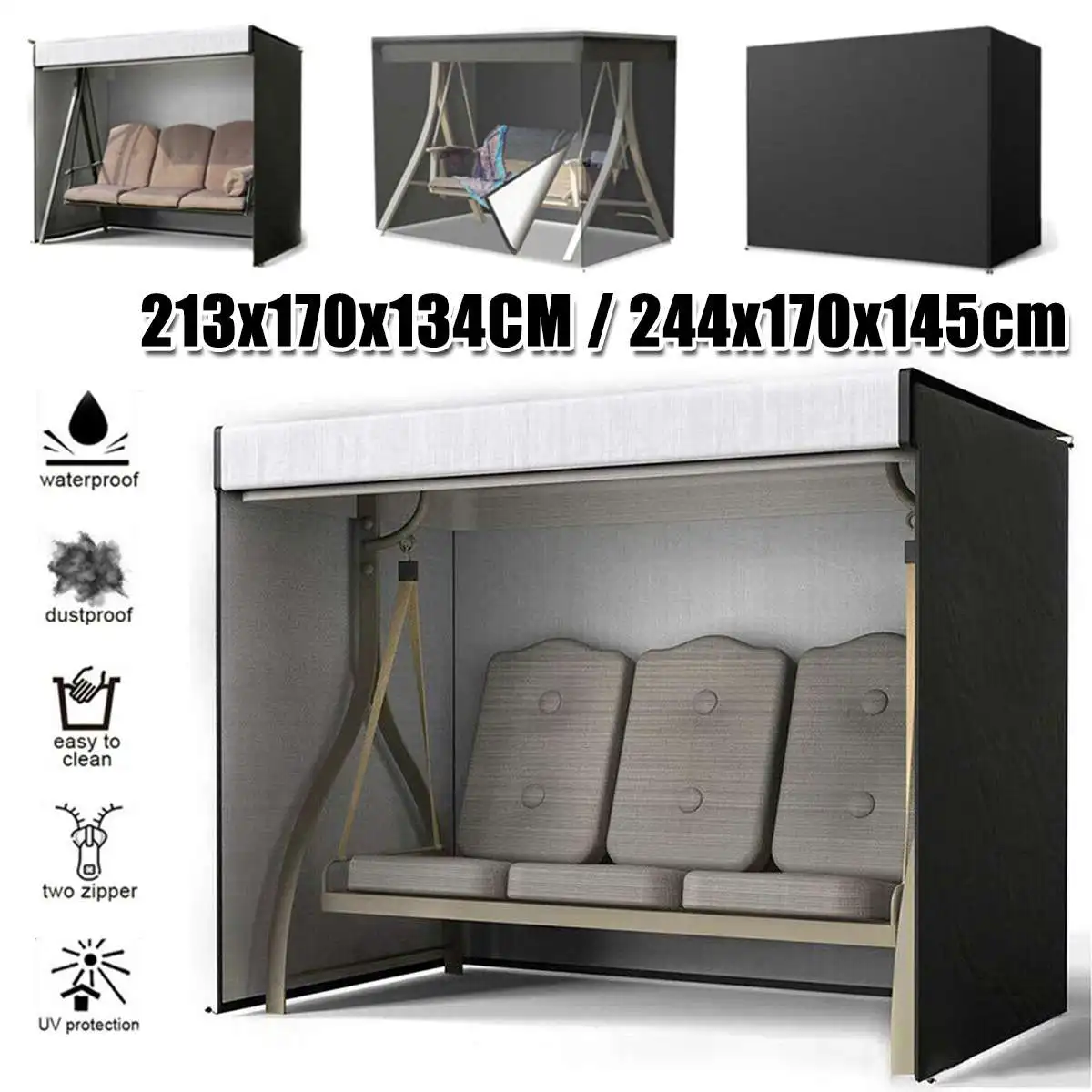 Особенность:-Он изготовлен из Оксфордской ткани 210D, обеспечивающей большую влагостойкость и защиту. Защита от ультрафиолета и выцветания.-2 молнии спереди упрощают надевание и снятие чехла.-Удобная конструкция с завязками.-Отлично подходит для защиты в помещении и на улице.-Грязеотталкивающий, легко устанавливается и снимается самостоятельно. Легко складывать и хранить.Спецификация:Название продукта: чехол на 3-местное поворотное сиденьеМатериал: толстый водостойкий материал 210D.Цвет: черныйРазмер: 213x134x170 см (244x145x170 дюйма)/x см (x дюйма)Подходит: 3-местное кресло-качели для патиоДля покрытия: 3-местное кресло-качели, гамак, кресло-качелиПосылка1 х чехол для 3-местного кресла-качели (качели в комплект не входят.)