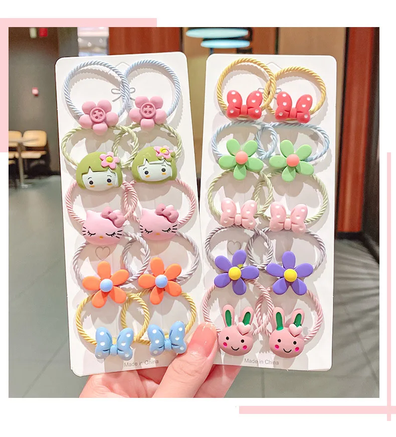 10 шт.компл. милые эластичные повязки для волос для девочек с рисун...