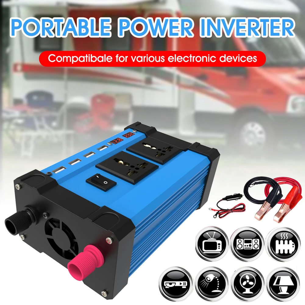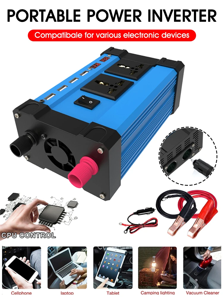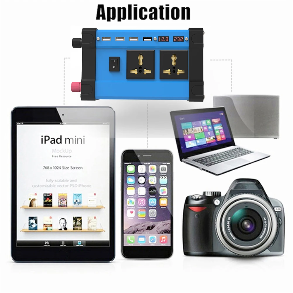 Новый автомобильный преобразователь напряжения 4000 Вт, цифровой светодиодный дисплей, преобразователь постоянного тока 12 В в переменный ток 220 В110 В с 2 розетками переменного тока, 2 розетками, 4 USB-портами