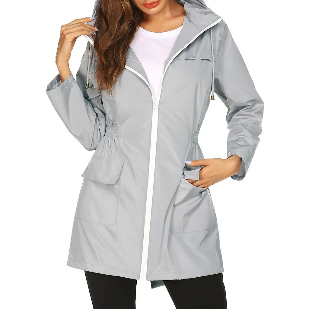 Женская ветровка с капюшоном, модная повседневная Водонепроницаемая теплая однотонная длинная куртка с карманами, свободная Водонепроницаемая женская одежда #10