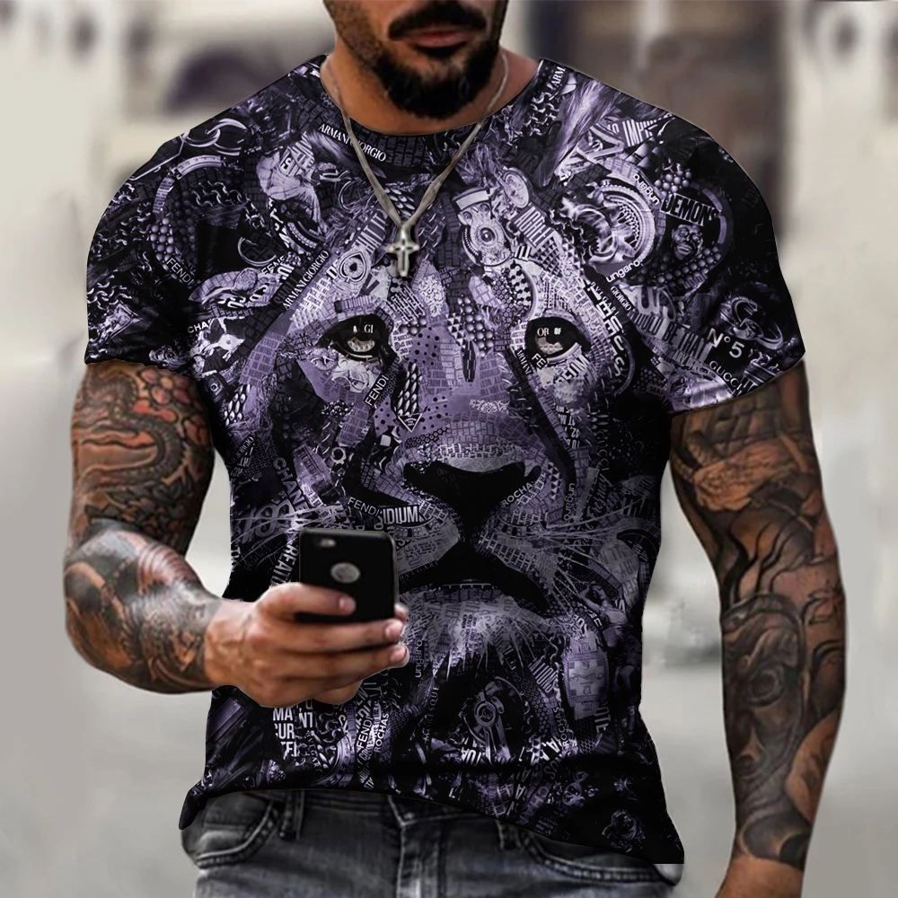 Футболка мужская с 3D-принтом головы льва, модная тенниска с коротк...