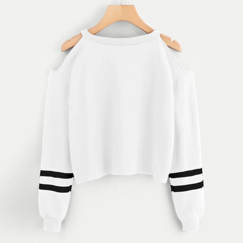 Укороченные женские толстовки с открытыми плечами, толстовки с длинным рукавом, пуловер, повседневные топы, тонкая Толстовка с длинным рукавом, женские корейские толстовки