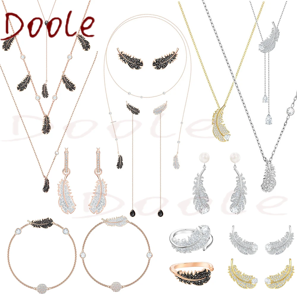 Модные ювелирные изделия высокого качества SWA классическое черно-белое перо Кристалл романтическое женское ожерелье лучший подарок рождественские подарки