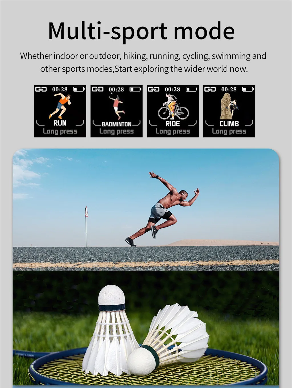 1. Спортивные часы имеют Множество функций и высокая эффективность затрат. 2. Разные цвета Дополнительный двухцветный ремешок может удовлетворить ваши потребности в цветах ношения. 3. Простой и стильный Внешний вид, дизайн дисковых часов. 4. Точные данные после Множество экспериментальных испытаний. 5. 100 мАч большой Батарея для сильного срока службы батареи. 6. Спортивные часы IP67 водонепроницаемый, который может удовлетворить ваши ежедневные потребности в стирке (Примечание: Не погружайтесь в горячую воду)Характеристики: