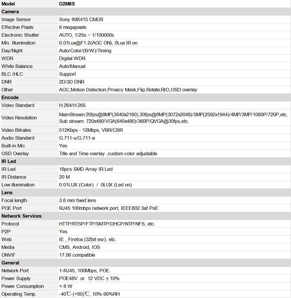 Новейший датчик SONY IMX415 приносит вам максимальный опыт 4KИ захватывает больше деталей, особенно в низкий светильник