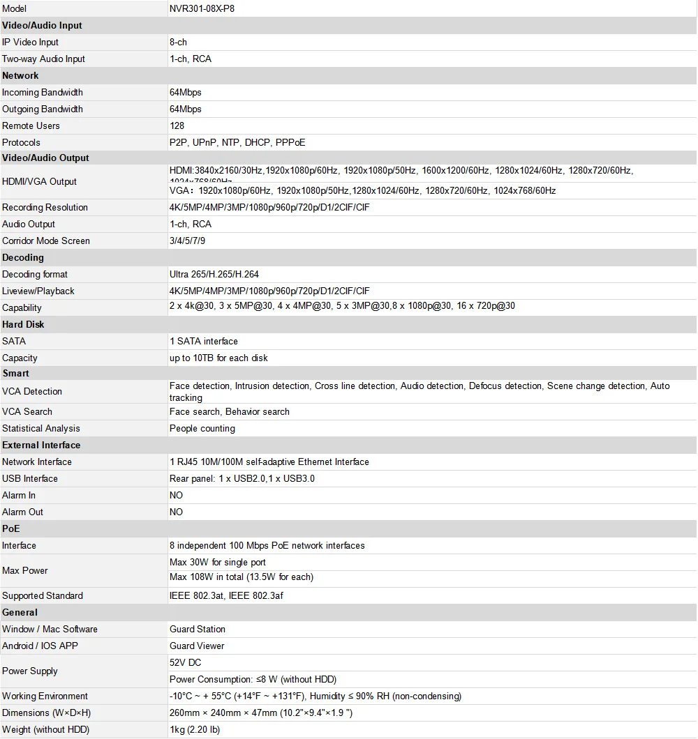 Спецификация NVR