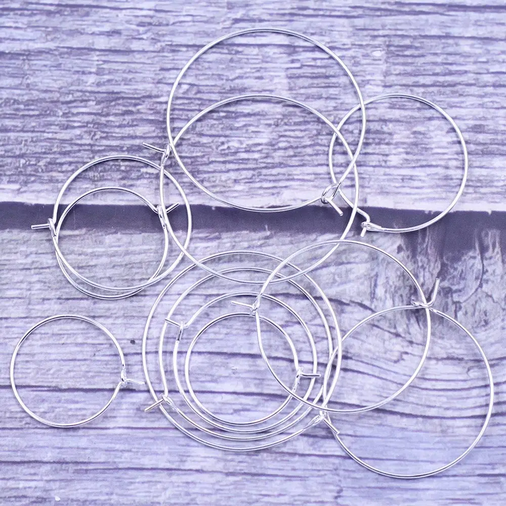 100 шт. разнообразные кольца, обручи, серьги, круглые серьги, проволока, винный бокал, маркировка, сплав, круглые посеребренные ювелирные изделия, сделай сам, фурнитура, подвески