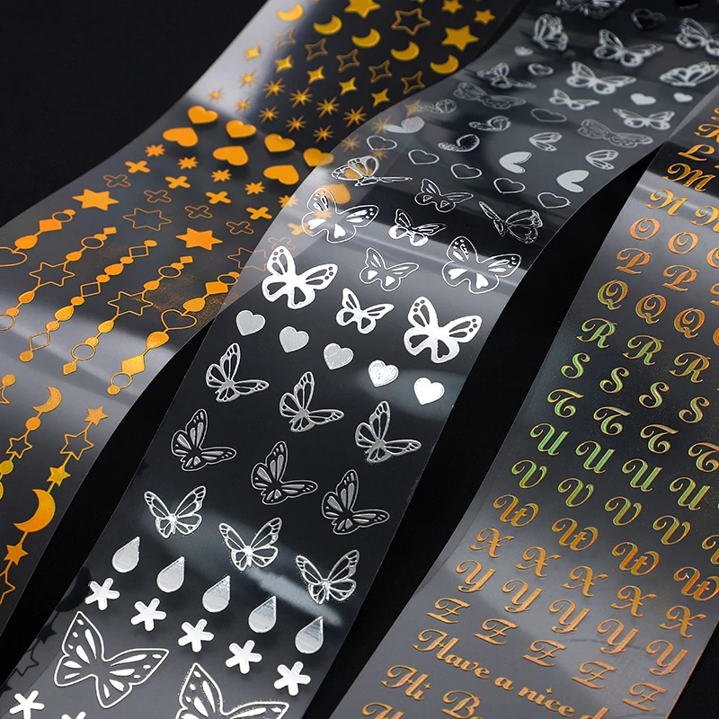 1 лист длинная полоса блестящая Блестящая бабочка сердце Снежинка Серебряная штампованная ручная учетная запись декоративные наклейки