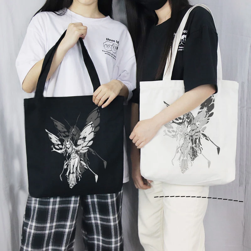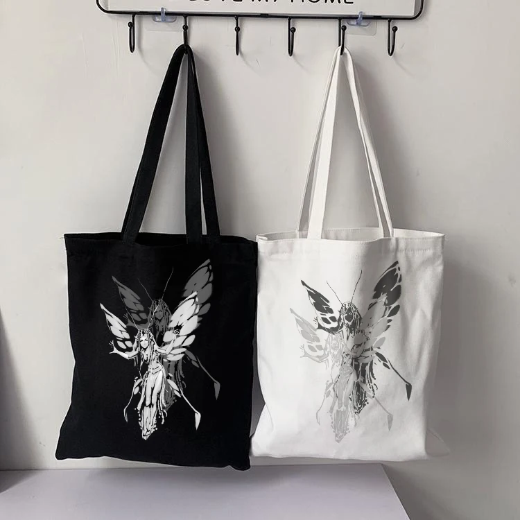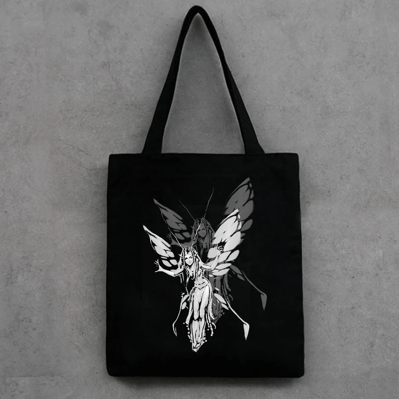 Симпатичная Женская Холщовая Сумка для покупок в готическом стиле Harajuku эстетичный графический принт в стиле Харадзюку Женская вместительная сумка
