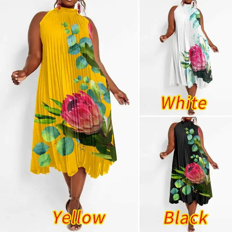 Летнее платье на бретелях без рукавов 2021 VONDA праздничные вечерние длинные платья с цветочным принтом стоячий воротник плиссированные платья большого размера