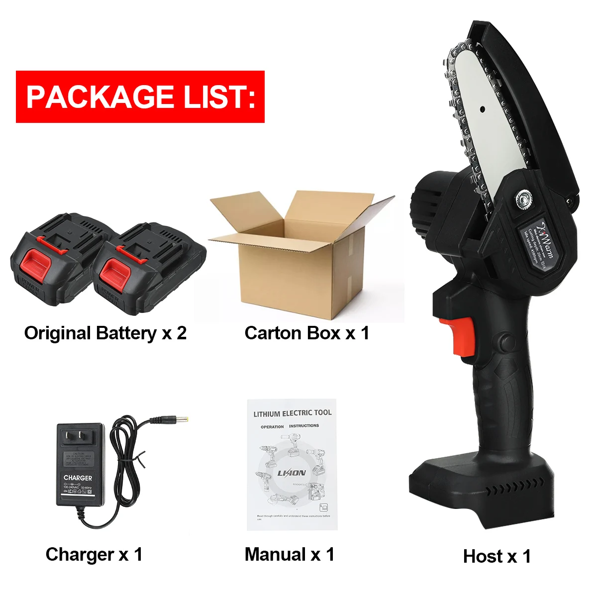 Мини-пила цепная электрическая, 1200 Вт, 4 дюйма, 88 в, 2 аккумулятора