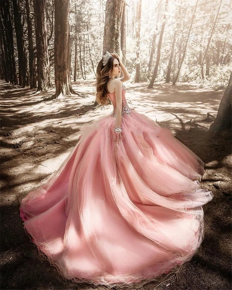 Розовое платье принцессы, 15 лет, платье для выпускного вечера, с кристаллами и бисером