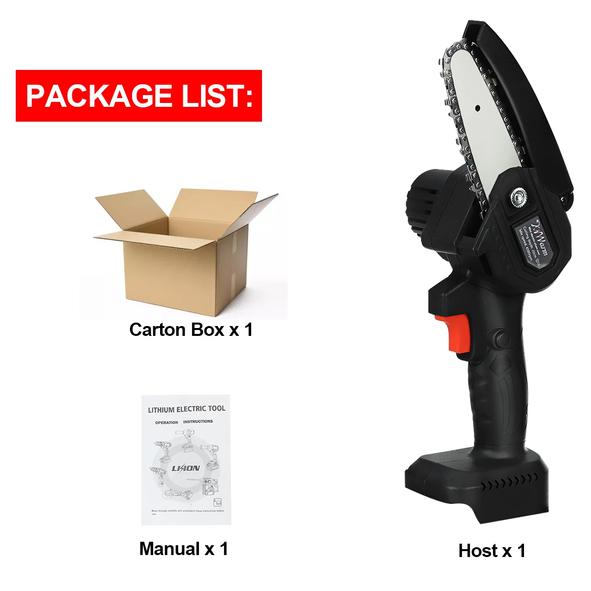 Спецификация:Материал: АБС + металлЦвет: черныйСкорость без нагрузки: 600 (об/мин)Мощность: 1200 ВтНапряжение: 88 вСкорость: 3500 об/минДлина направляющей пластины: 4 дюймаСкорость цепи: 5 м/сРазмер резки: <100 ммВремя работы: аккумулятор может работать в течение 1,5 часовХарактеристика:Маленький размер, можно держать одной рукой.Практичное, быстрое и низкое энергопотребление.Переключатель регулировки, быстрая и медленная регулировка скорости, плавное изменение скорости.Почищенный щеткой двигатель из чистой меди имеет сильную мощность, быструю скорость резки и улучшенную эффективность.Направляющая цепь, глубокая закалка, более износостойкая, гладкая резка.Перезаряжаемая Электрическая цепная пила, светильник и портативный, длительный срок службы батареи и не повредит кору.Легкий корпус, легкий и удобный, легкий дизайн, длительное Удержание не повредит руки.Интеллектуальная плата управления цепью, защита от перегрузки, для удовлетворения ваших различных потребностей в конструкции.Подходит для обрезки веток в садах, обрезки ветвей в городах, лесозаготовки, отдыха и удобного наружного оборудованияСпециальная направляющая пластина не должна смазывать шарик из вольфрамовой стали, поэтому машина может уменьшить сопротивление во время работы и уменьшить износ машины.Посылка включает в себя:Режим 1:1 Черная Электрическая цепная пила2 батарейкиАмериканское зарядное устройство-1 шт.Некоторые аксессуарыРежим 2:1 Черная Электрическая цепная пилаАккумулятор-1 шт.Американское зарядное устройство-1 шт.Некоторые аксессуарыРежим 3:1 Черная Электрическая цепная пилаНекоторые аксессуарыПримечание:1. При ручном измерении допускается погрешность в 1-3 см, спасибо.2. Из-за разницы между различными мониторами изображение может не отражать фактический цвет изделия. Мы гарантируем, что стиль такой же, как на картинке. Пожалуйста, поймите, спасибо!