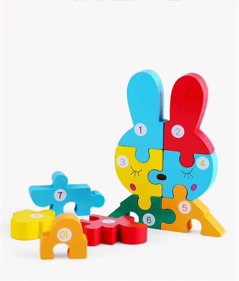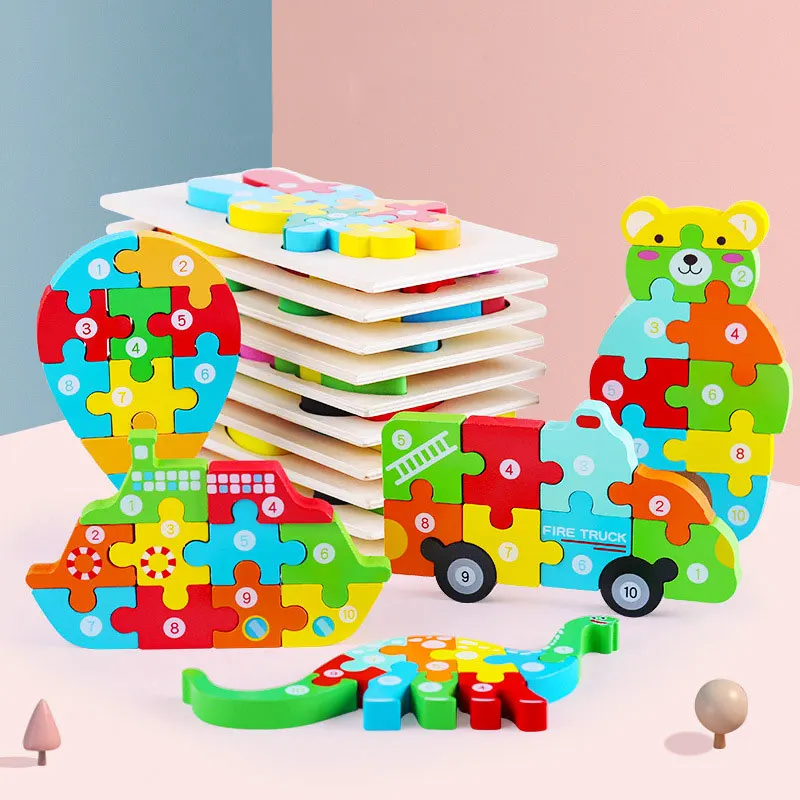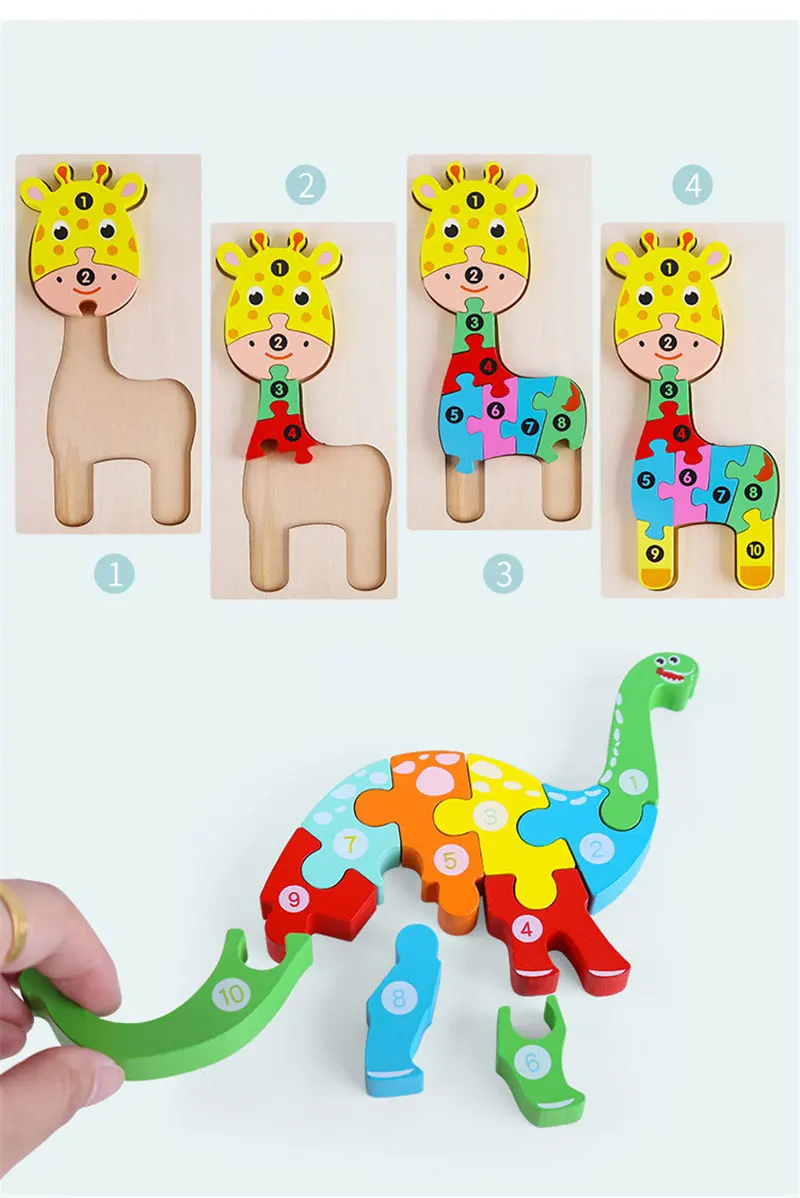 Пазлы Монтессори для детей с мультяшными животными, детские развивающие игрушки, 3D деревянные головоломки, детские игрушки Монтессори, деревянные головоломки
