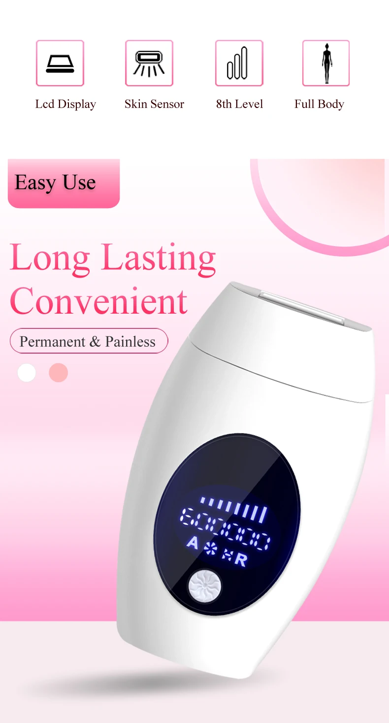 1. Применимо: Рабочее напряжение 110 ~ 240 В, подходит для всех стран мира.2. Больше времени вспышки: 600000 вспышек для более длительного использования.3. ЖК-дисплей: предоставление четкой информации о рабочих режимах, остальных вспышках и уровнях мощности.4. Два режима работы: автоматический и ручной режимы для различных областей кожи.5. Безболезненный: пять регулируемых оптимальных уровней энергии в зависимости от толерантности кожи. Обеспечивает нежное лечение безболезненно и легко, не повреждая кожу.6. Быстрая и подходящая область обработки: 4 квадратных см размер пятна не слишком большой или не слишком маленький для любого изгиба тела, высокая эффективность и быстрая скорость, которая занимает всего несколько минут, чтобы удалить перекрещивающиеся волосы, которые трудно для традиционного метода удаления волос.7. Возможность обнаружения кожи: цифры на ЖК-дисплее мигают, когда устройство готово к работе.8. Постоянный: IPL работает внутри пор, разрушает волосы papilla, таким образом, обеспечивает постоянное удаление волос.