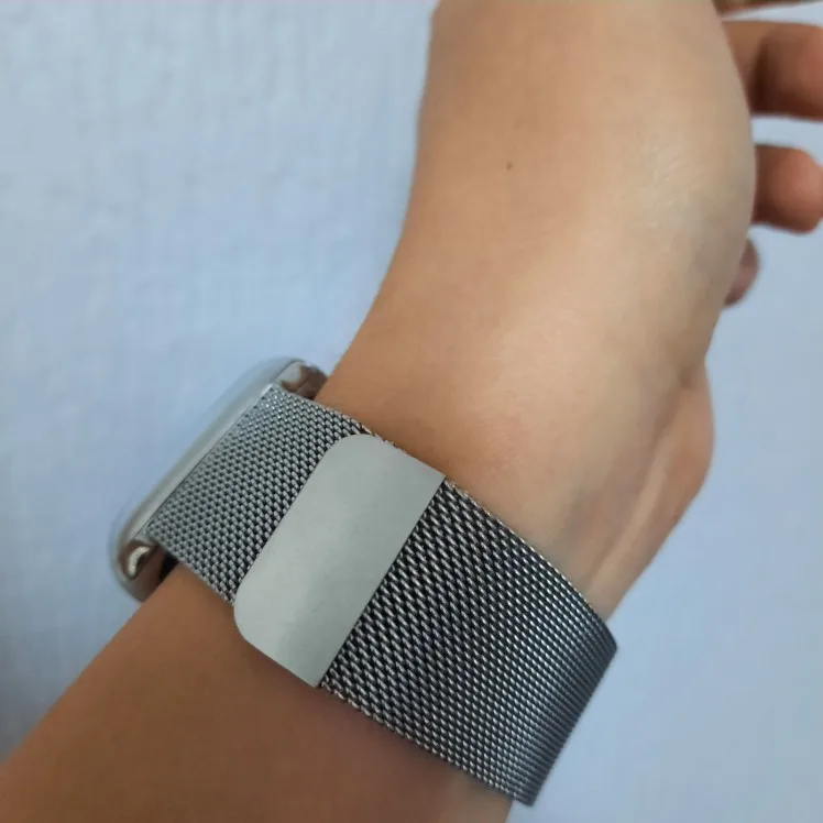 Стальной ремешок миланская петля для Apple Watch 42-44 мм – это современная интерпретация плетения, изобретённого в Милане в конце XIX века.Гладкая сетка из нержавеющей стали, изготавливаемая на специальном итальянском оборудовании, изящно облегает запястье.Благодаря своим магнитным свойствам миланский сетчатый браслет идеально подгоняется по руке и аккуратно застёгивается.Ремешок подходит для всех моделей Apple Watch с посадочными гнездами 42 и 44 мм.