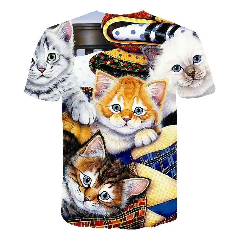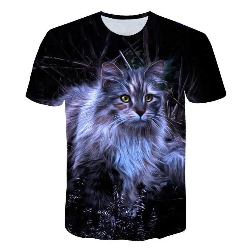 Футболка с 3D-принтом кошки для мужчин и женщин, модная рубашка с к...