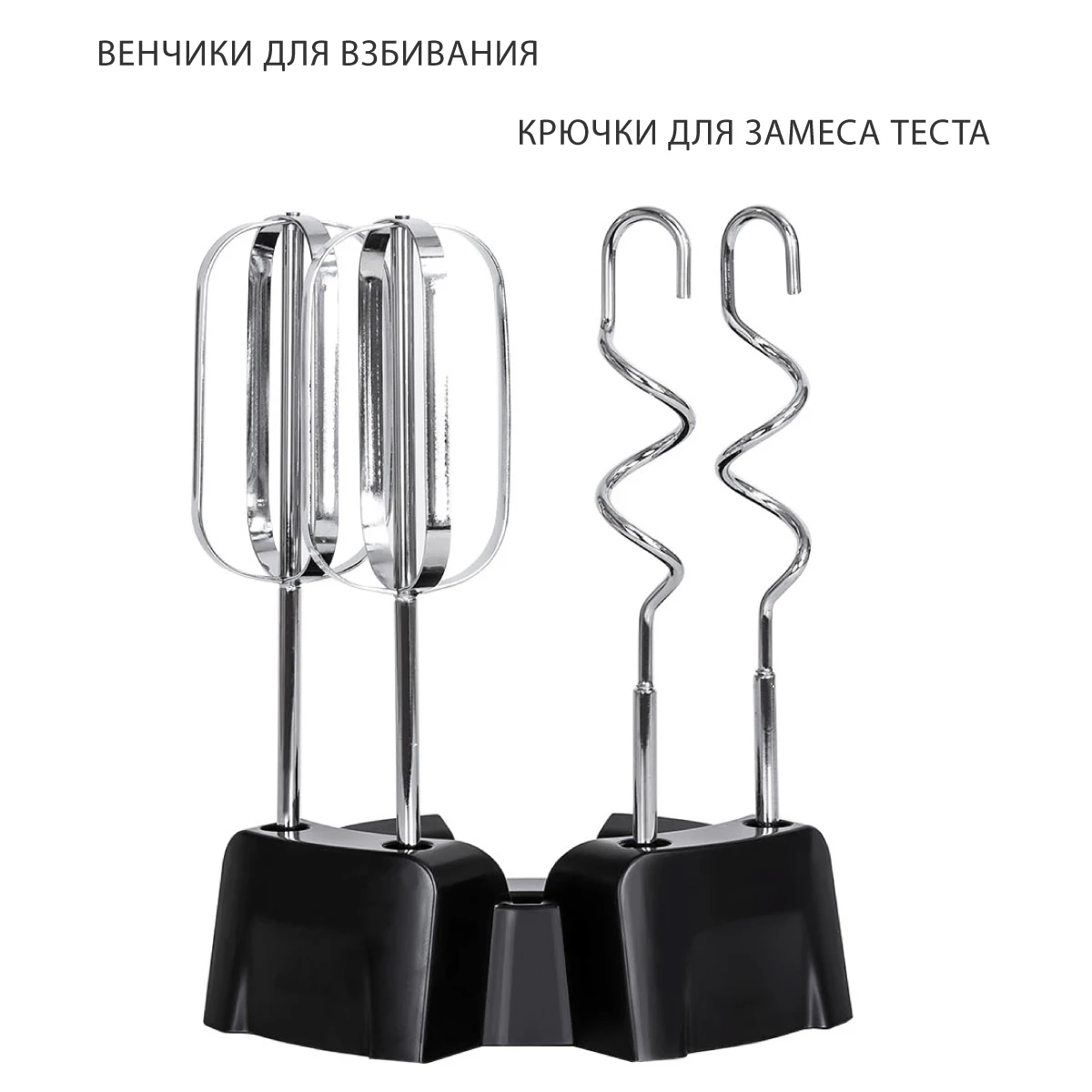 Компактный, стильный и простой в управлении миксер пионер, изготовленный из качественного пластика, в считанные минуты разминает любое тесто, приготовит Бисквитное печенье и сделает егоНаш миксер станет незаменимым помощником на вашей кухне. Благодаря компактному размеру, он не займет много места и будет удобен при хранении и перемещении, например, летом, если вы хотите взять его с собой на дачу.Миксер имеет мощность 350 Вт, поэтому он легко справится с любой повседневной задачей в приготовлении пищи. Для комфортного использования мы предоставили 5 скоростей, с более низкой скоростью удобно разминать тесто, на высоковзбиваемых яйцах.При включении турбо скорость вращения сопла значительно увеличивается, иногда это очень необходимо, например, когда в тесте есть комочки, достаточно повернутьВ комплект входят 4 насадки: 2 венчика для взбивания яиц и крема и 2 крючка для разминания теста, они легко устанавливаются и снимаются с помощью кнопки.Для компактного хранения предусмотрена специальная подставка.Это полезное и функциональное устройство поможет Вам подготовить много блюд, и это порадует близких.Упаковочный листМиксер, сопла, подставка для хранения, инструкция и гарантийный талон.