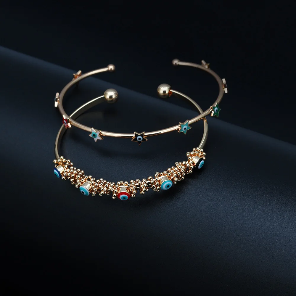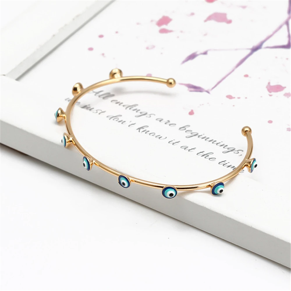 Распродажа, медный браслет с голубыми глазами, женский модный простой браслет со сглаза, Открытый браслет, не выцветает, ювелирные изделия, оптовая продажа