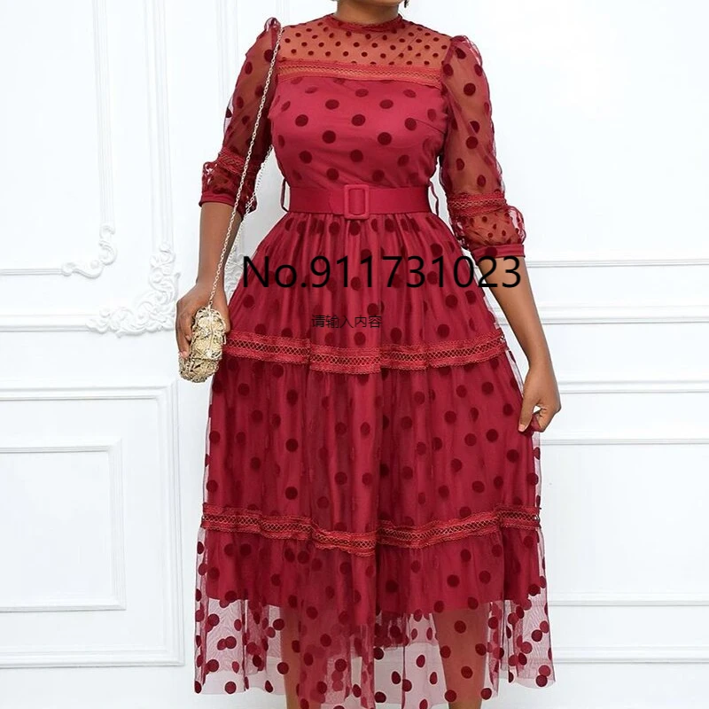 Женское длинное Сетчатое платье-рубашка в горошек, прозрачное черное платье из тюля в африканском стиле, модные весенние женские халаты, туника размера плюс XL