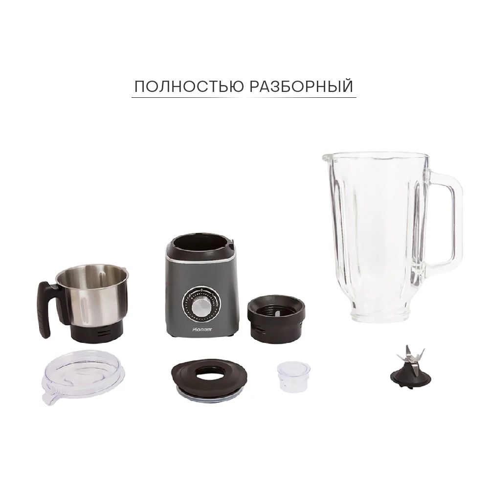 Блендер Pioneer SB146 серый, черный, прозрачный