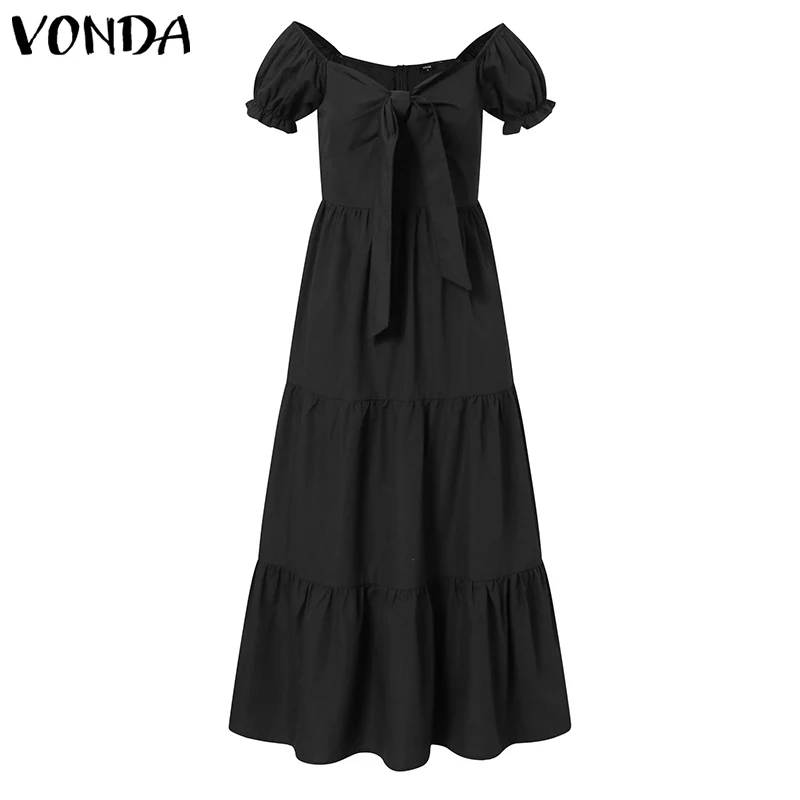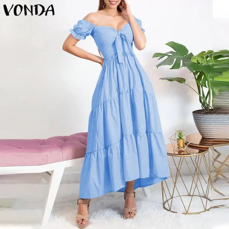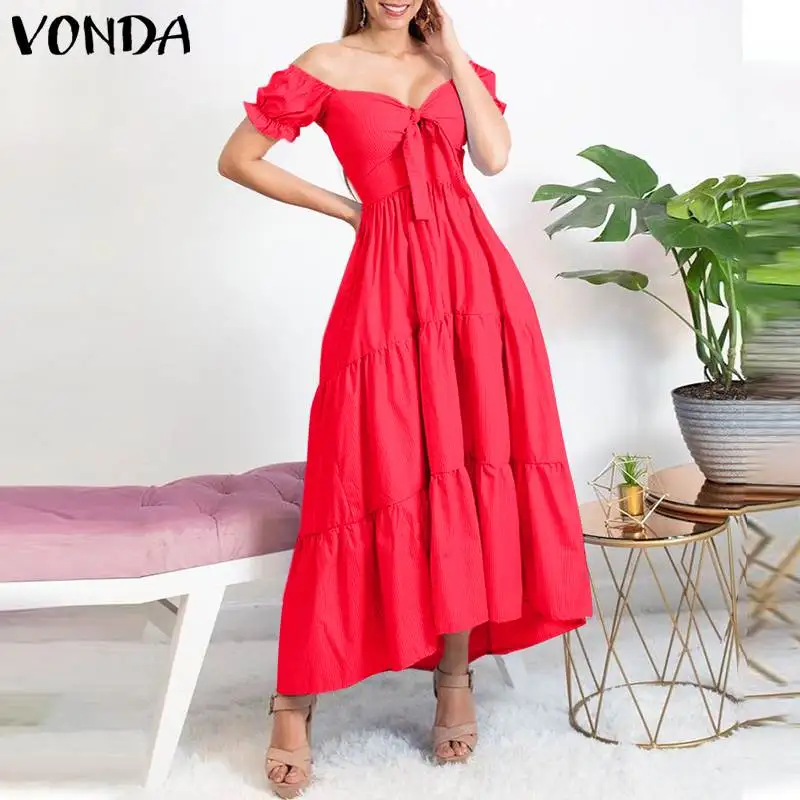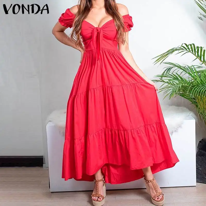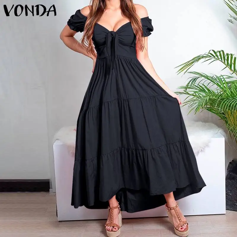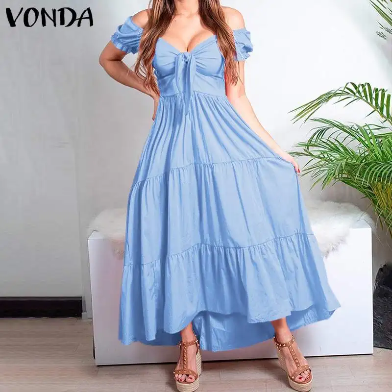 Женское длинное платье-макси с открытыми плечами VONDA 2022, богемный сарафан, винтажное плиссированное платье с оборками для вечеринки, платье