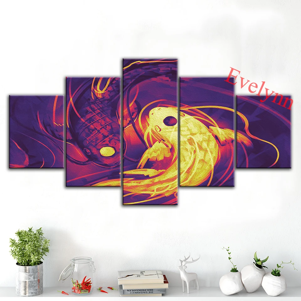 Современный холст 5 шт. Япония постер Инь Ян кои рамка настенный ху...