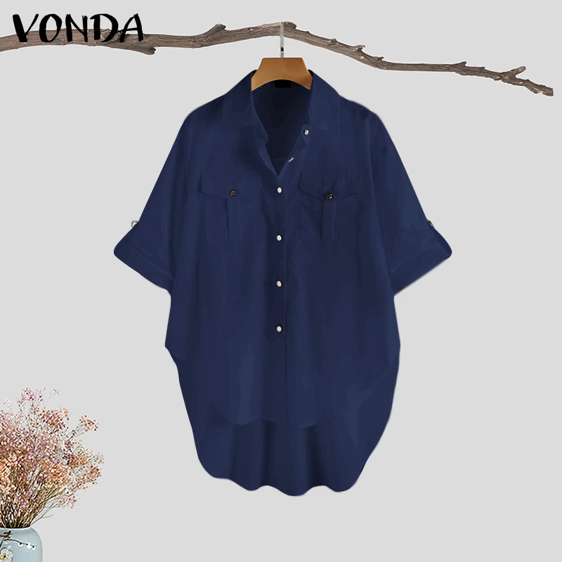 VONDA женские летние рубашки 2022 Повседневная однотонная блузка с ...
