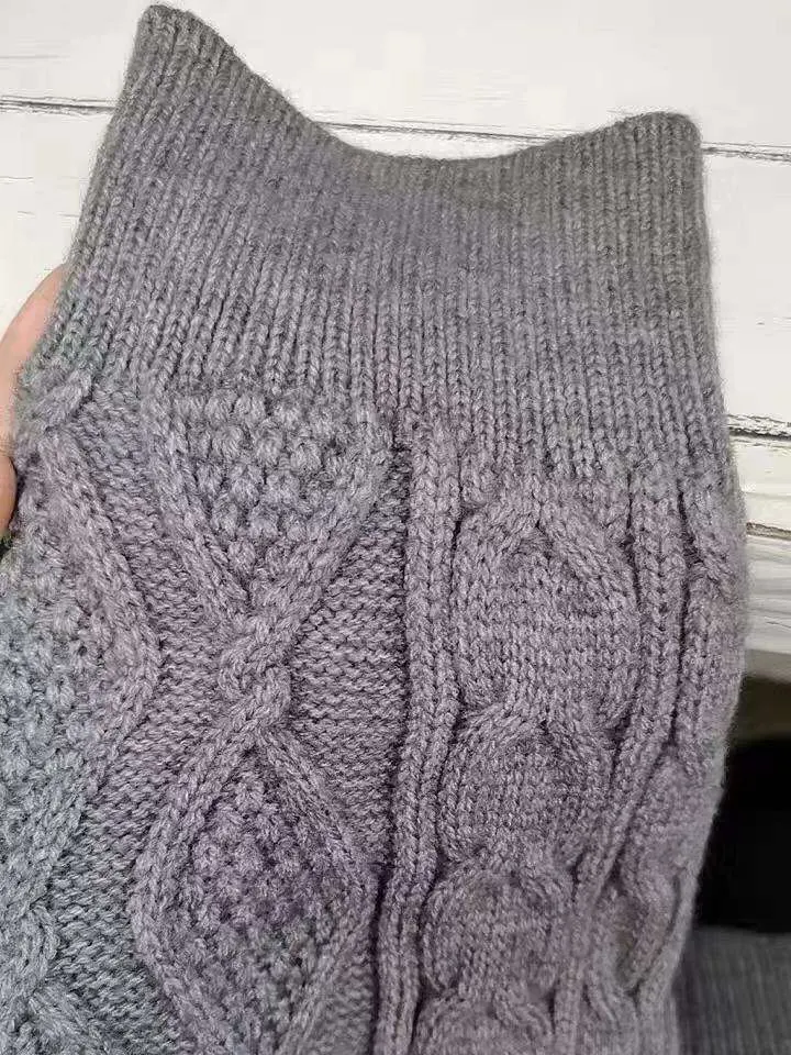 Плотное вязаное платье с высоким воротником, серое шерстяное длинно...