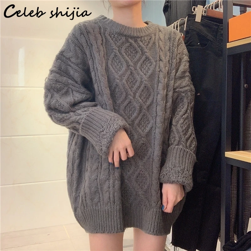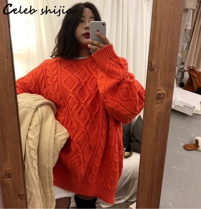 Женский Длинный свитер в клетку SHIJIA, красные вязаные корейские толстые джемперы с длинным рукавом и круглым вырезом, осень 2021