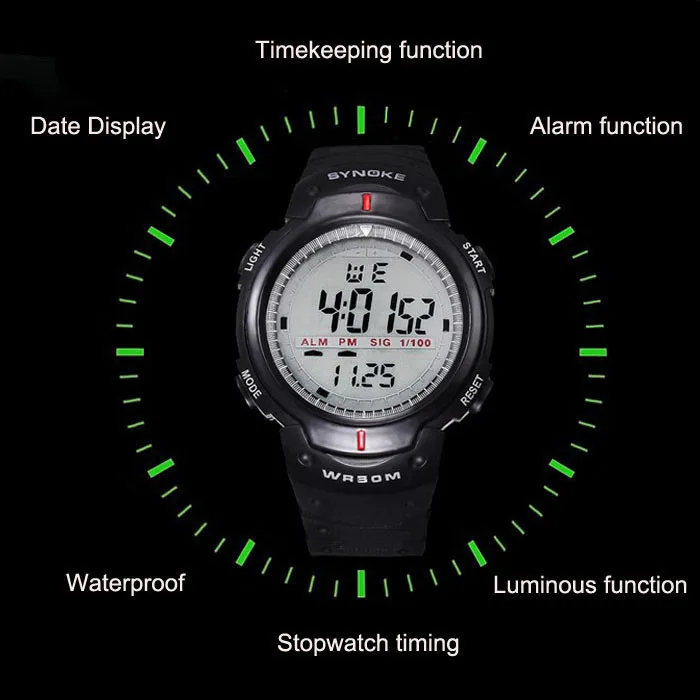 Мужские водонепроницаемые электронные часы со светодиодной подсветкой и большим циферблатом