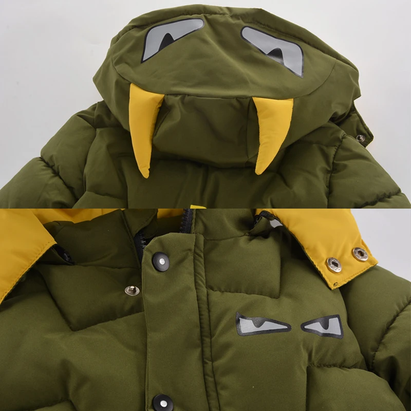 Зимняя новая куртка на хлопковом наполнителе для мальчиков модная детская толстая пуховая куртка с мультипликационным изображением маленького монстра детская теплая хлопковая куртка