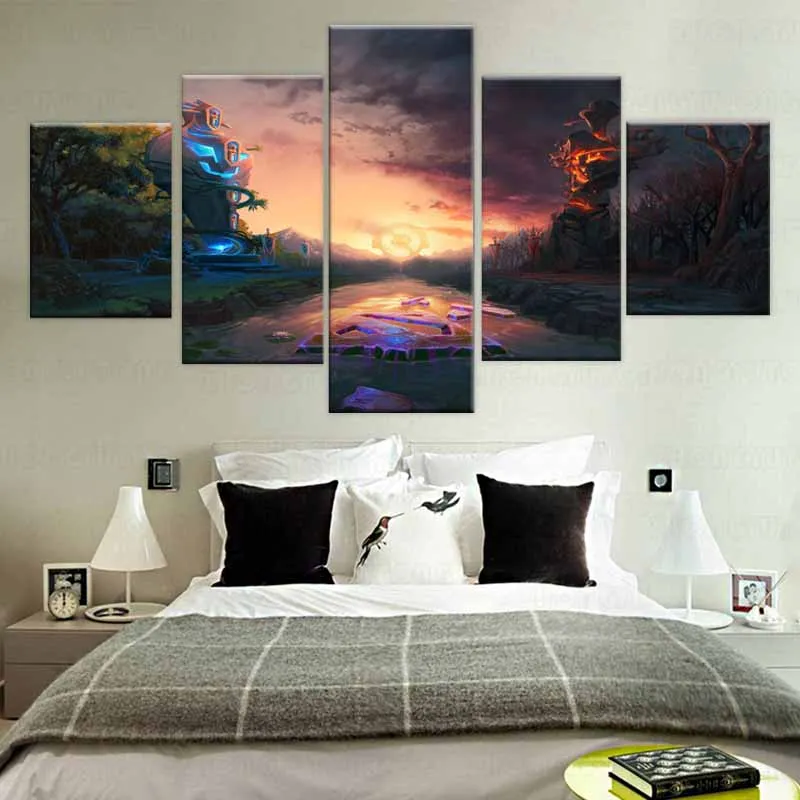 Холст без рамки 5 панелей Zelda Gamer аниме Куадрос настенные посте...