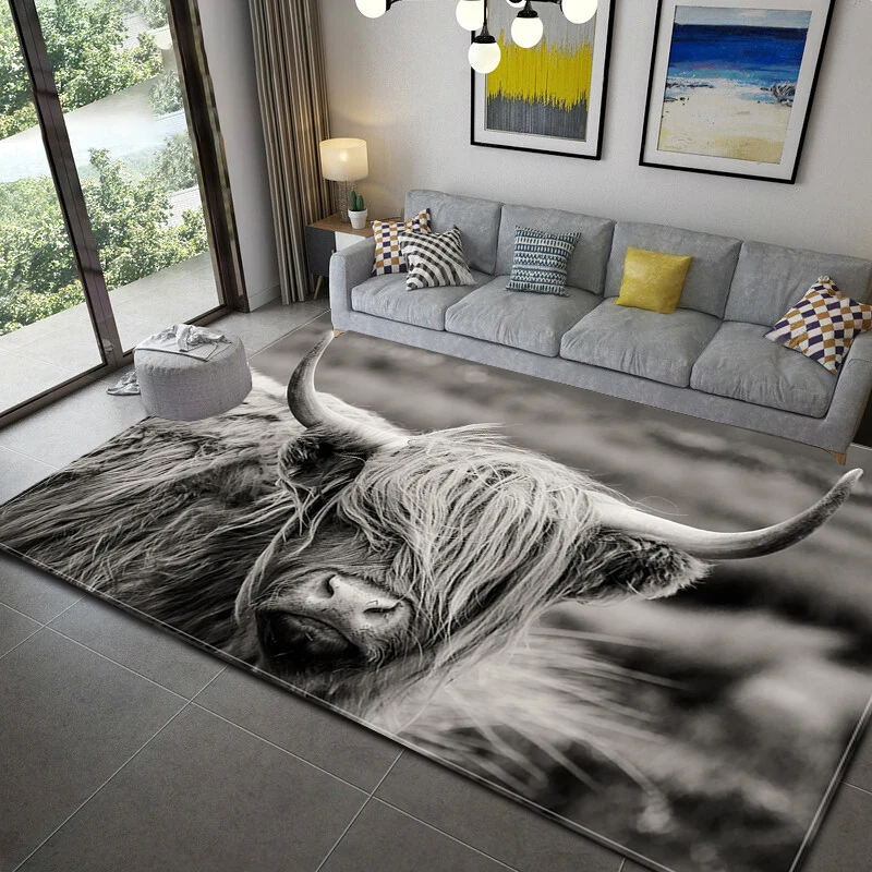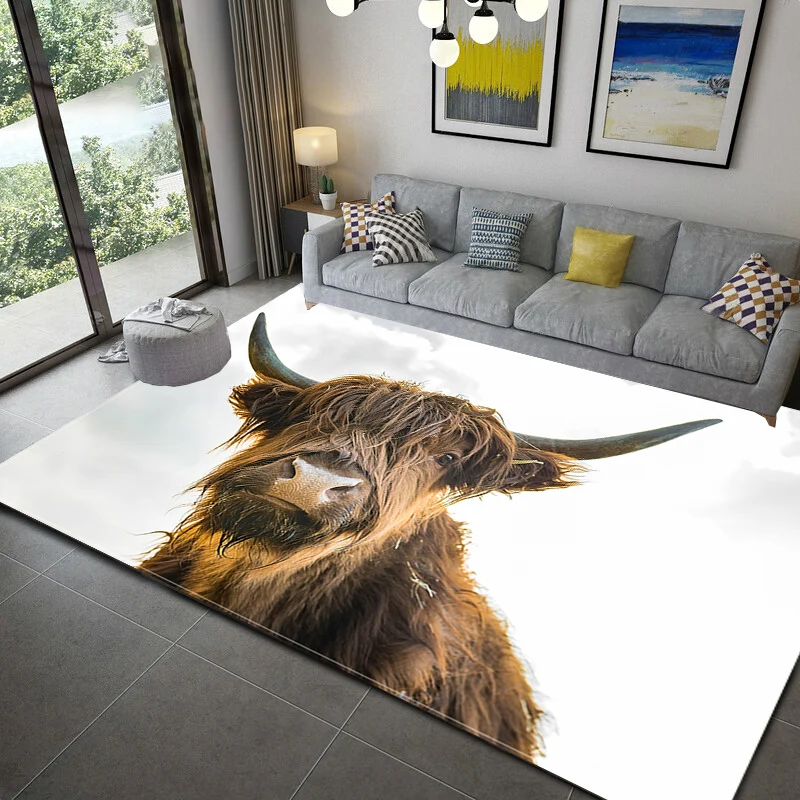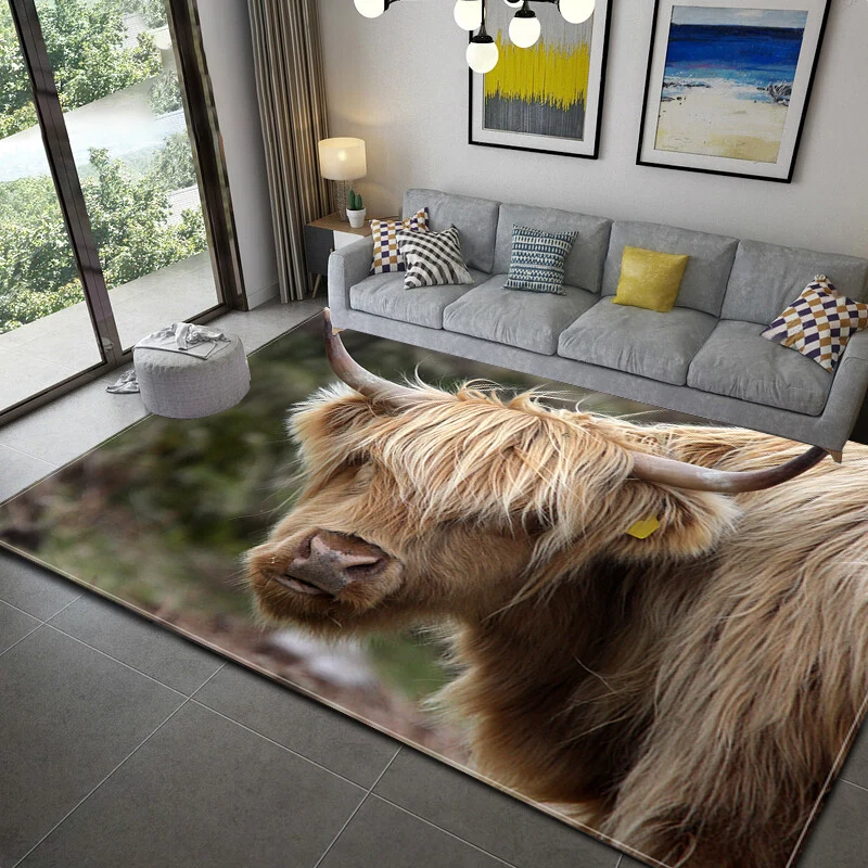Шотландский коврик с принтом коровы для гостиной, моющийся ковер для спальни, большие коврики, современный напольный ковер с принтом, коврик для двери