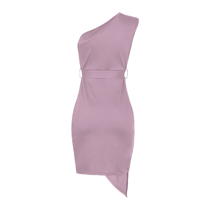 Летнее мини-платье на одно плечо с косым воротником, 2021, женские ...