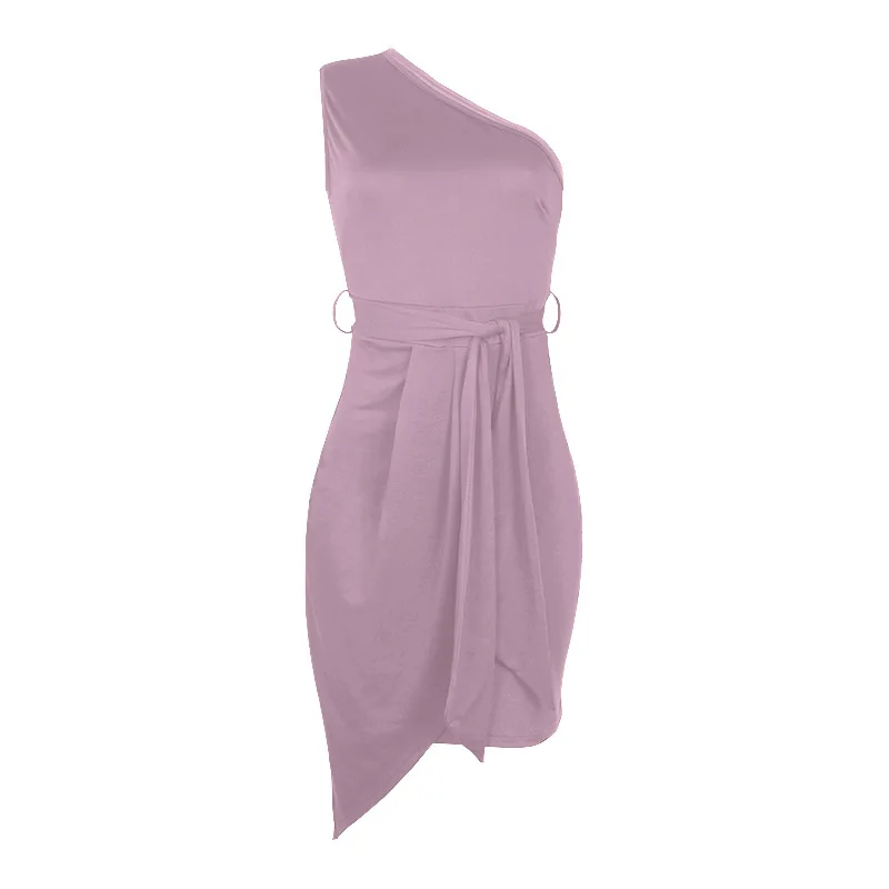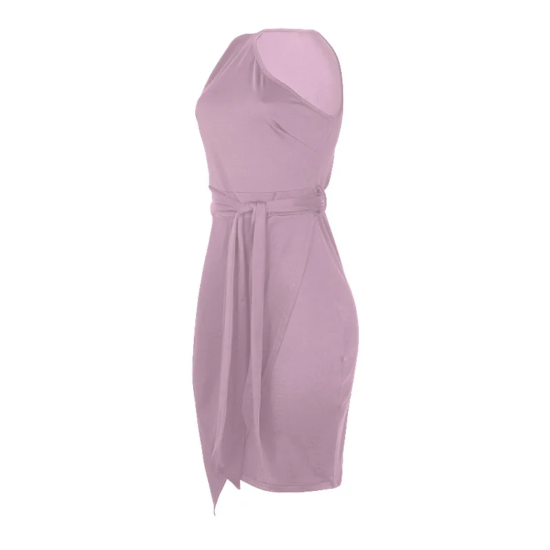Женское Ассиметричное платье с поясом, элегантное однотонное платье...