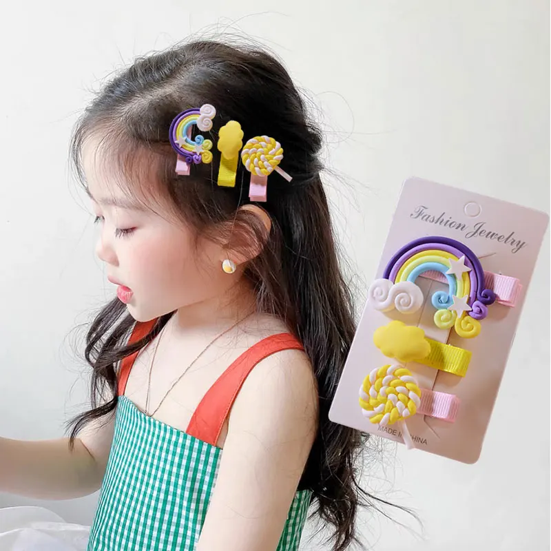 3 шт.компл. милые заколки для волос с радужными облаками и леденцами для девочек, детские милые заколки для волос, заколка-Пряжка, украшение для волос, милые аксессуары для волос, Новинка