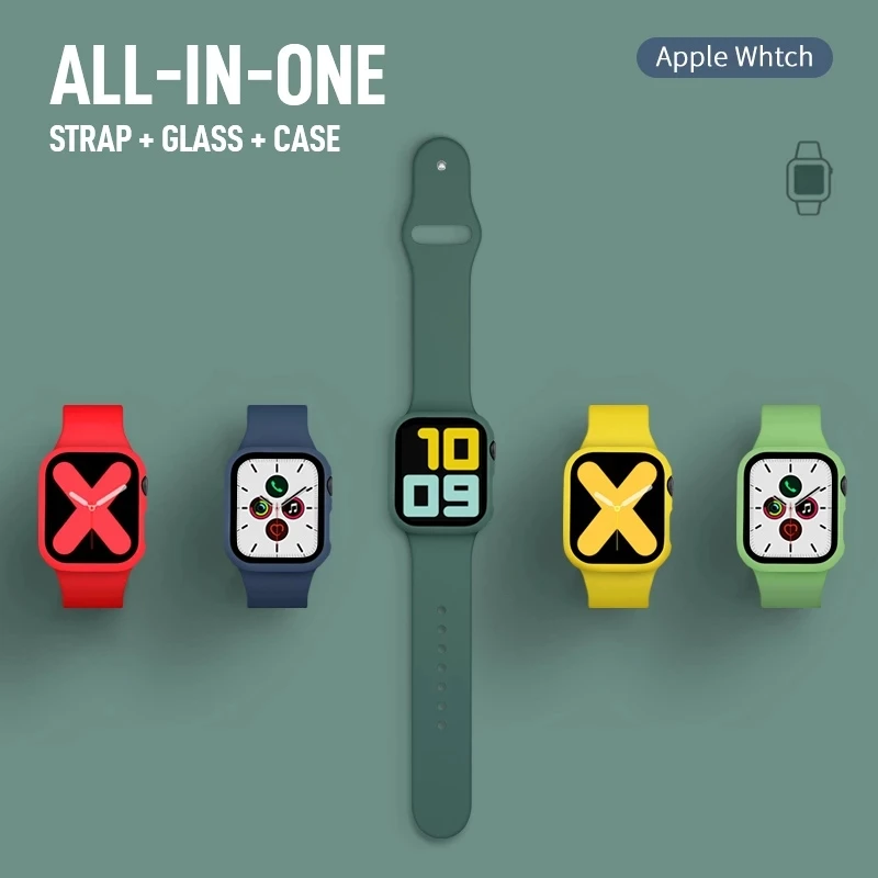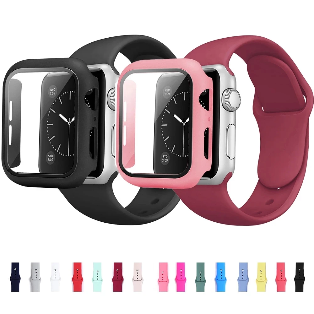 Ремешок и чехол для Apple Watch Band 44 мм 40 мм, силиконовый бампе...