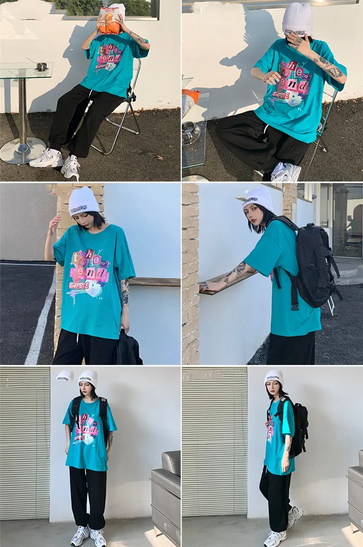 Футболка Ins Style Tide с мультяшным принтом, мужские футболки High...