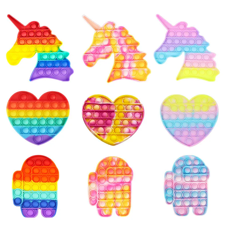 Смешанные цвета, силиконовые игрушки для снятия стресса, пузырьковая игра, пуш-ап, сенсорная игрушка, забавные игрушки для взрослых и детей, Обучающие игрушки в виде единорога