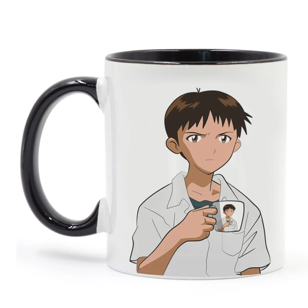 Shinji Holding A Mug Text Anime воздухопроницаемая Мужская кружка 350 мл высокого качества Креативный дизайн Лучшая Акция кружка подарок друзьям