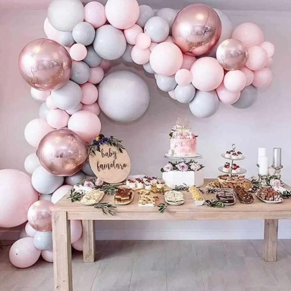 Воздушный шар, серый и розовый воздушный шар, набор воздушных шаров из фольги цвета розового золота 4D для свадьбы, праздника, дня рождения, вечеринки
