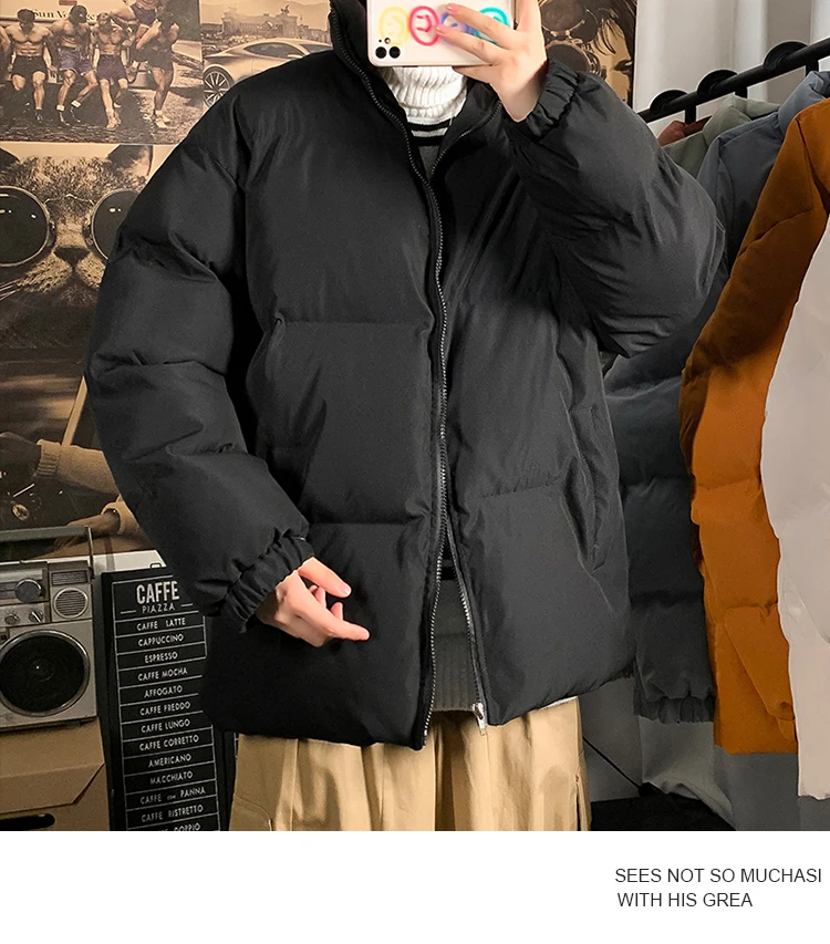 Мужская теплая парка в стиле Харадзюку, зимняя куртка, Мужская Уличная одежда, парка в стиле хип-хоп, свободная черная одежда, однотонные женские куртки, модель 2021 года
