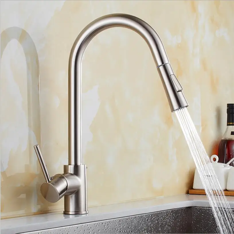 Выдвижной кухонный смеситель, хромированныйзолотистыйникелевый кран...