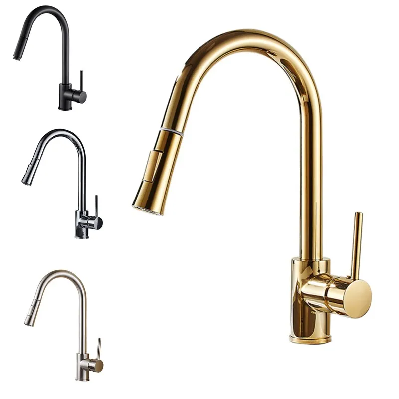 Выдвижной кухонный смеситель, кухонный кран с золотымхромовымникеле...