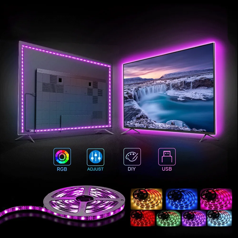 Светодиодная лента 5 В, usb, 60 светодисветильник Дов, светодиодная ленсветильник s 5050 2385, гибкая батарея rgb с разными цветами, дополнительная световая полоса для создания атмосферсветильник