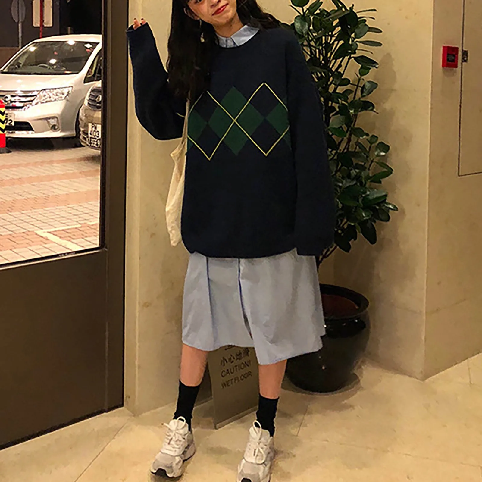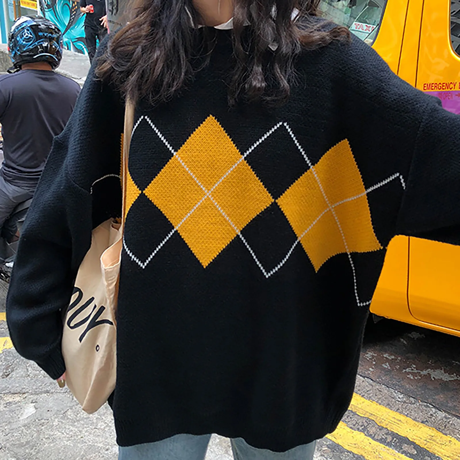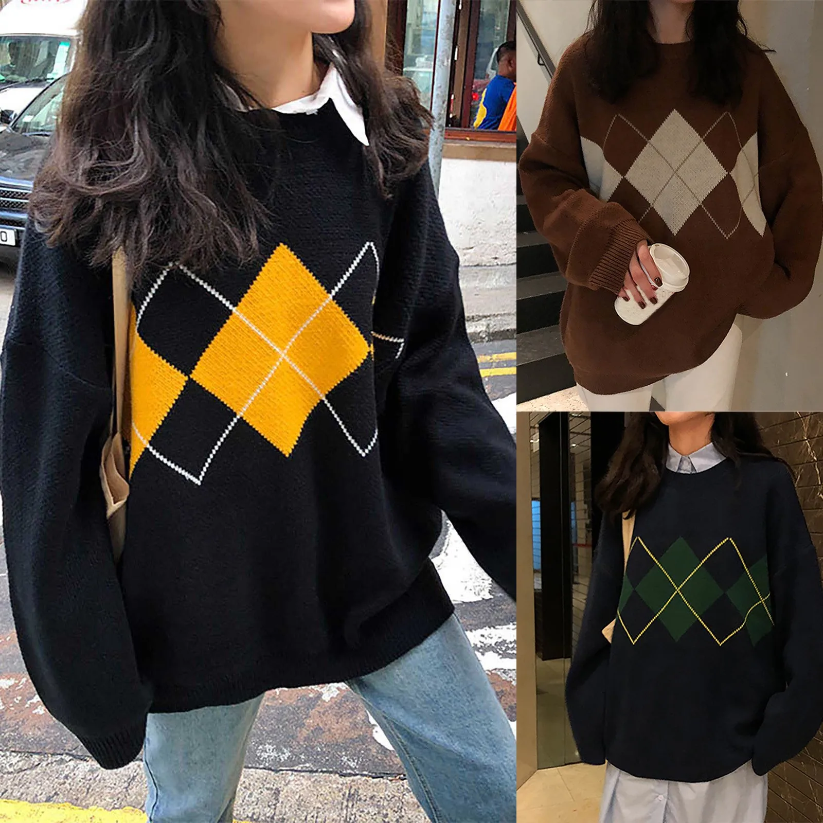 Зимний пуловер Herbst Innenhof Stil Geometrisches Muster