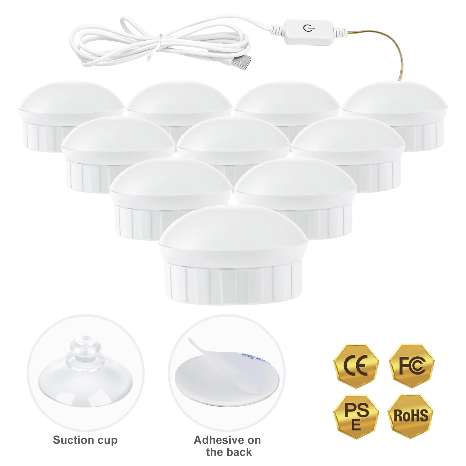 Светодиодная лампа для зеркала для макияжа, комплект из 2610 лампочек с регулируемой яркостью, 3 цвета, USB, 12 В, для туалетного столика, зеркала для туалетного столика