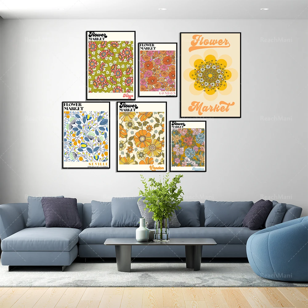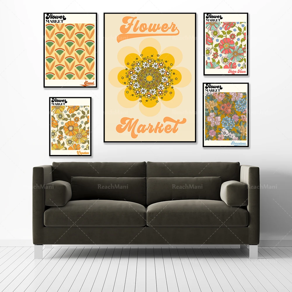 Ретро-постеры с цветочным принтом в стиле ретро, постеры с печатью ...