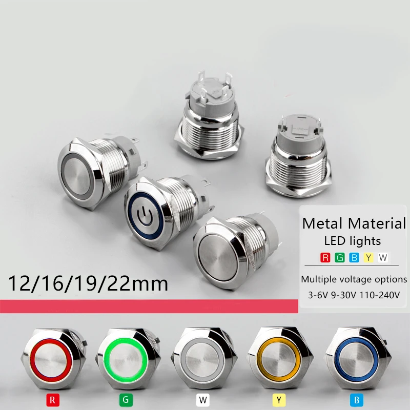 Водонепроницаемый металлический кнопочный переключатель, 12161922 мм